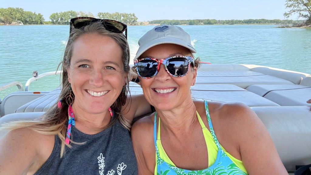 The boat ride itself was peaceful and somehow still thrilling. The breeze was a gift, and the boat gliding over the water was a lullaby. Even the toddler chilled out long enough to lean back in someone’s lap and just enjoy the ride. The evening ended with a cool breeze on the porch, farm silhouettes against the Nebraska sunset, and kids who refused to adjust to Central Time. I didn’t mind—there’s something magical about long summer evenings when the sky takes its sweet time turning dark.