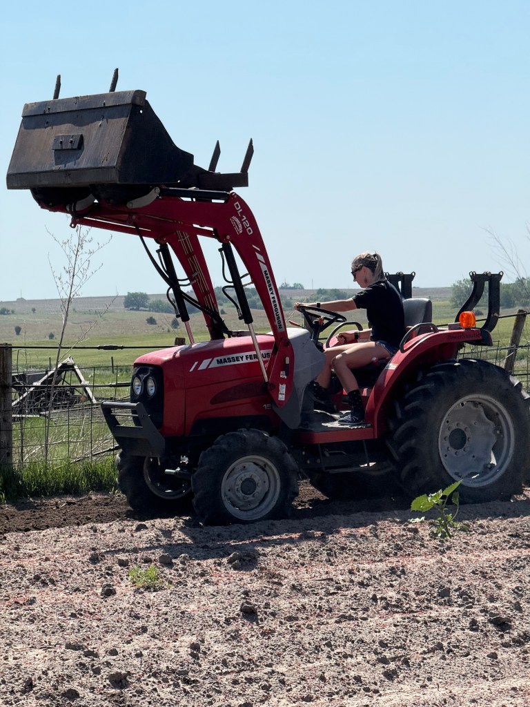 I got to till the garden (yes, me!) with a tractor. There’s something deeply satisfying about making rows for pumpkins while smelling like diesel and ambition. Yay for modern technically because after I was shown the real old tractor and was surprised it still turned over. There’s also something a little terrifying about trusting machinery from before World War II, but hey—it worked.