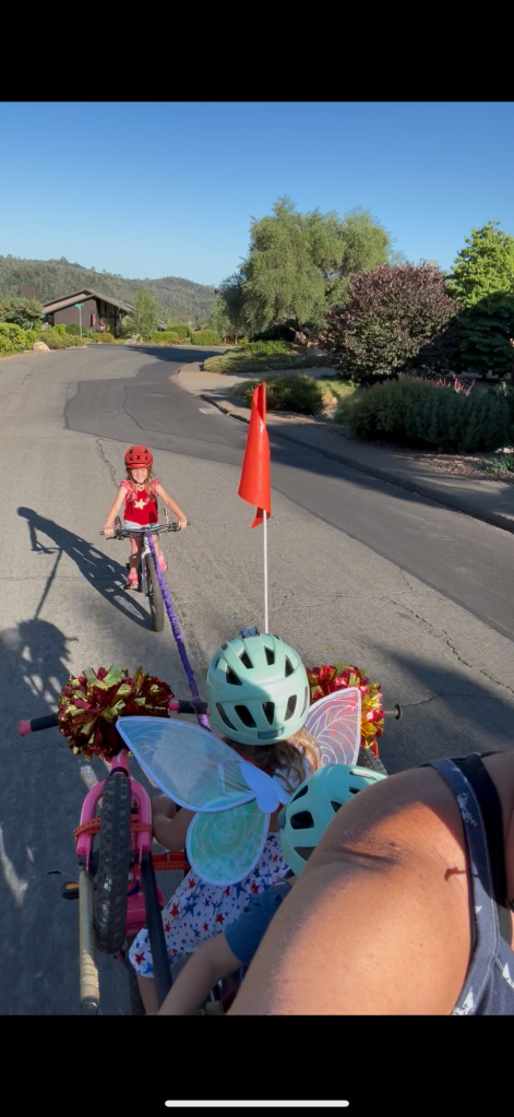 Yes, with the two littles already on the back. And their bikes decorated for the parade.