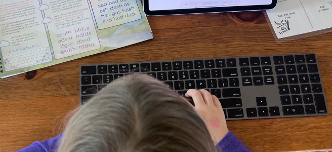 The recent shift in homeschooling involves using text messaging as a practical learning tool for typing, spelling, and communication. A safe messaging system allows Bug to interact with a trusted group, enhancing her skills in a low-pressure environment. This approach has notably improved her spelling confidence, keyboard awareness, and overall communication abilities.